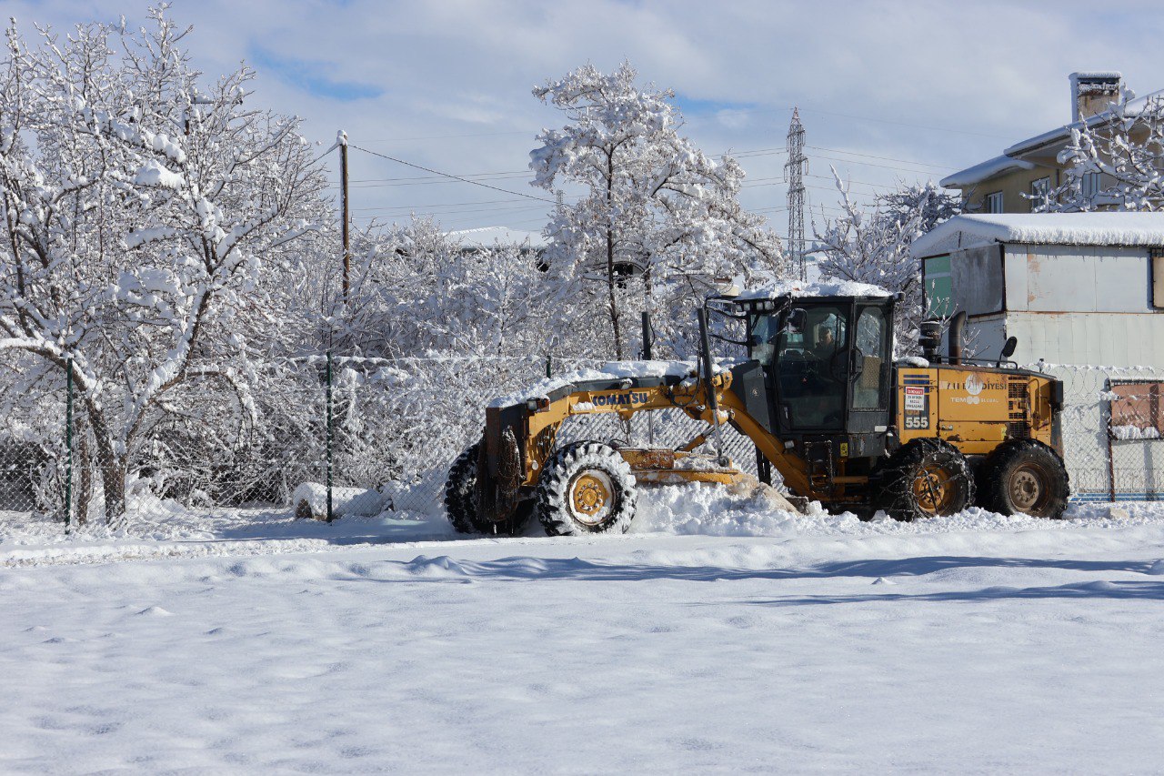 Tuşba Belediyesi, yoğun kar yağışının ardından Beyüzümü Mahallesi’ndeki okul bahçelerini kardan temizleyerek öğrenciler için güvenli bir eğitim ortamı oluşturdu.